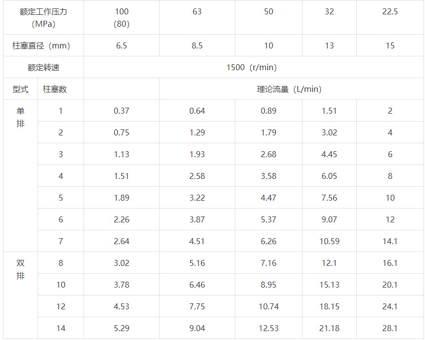 3.8 工作壓力   視柱塞直徑而定,見表1