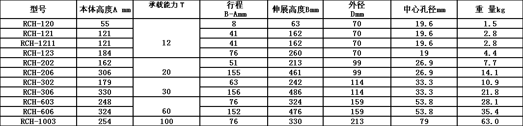 | RCH系列單作用空心千斤頂 詳細(xì)參數(shù) |