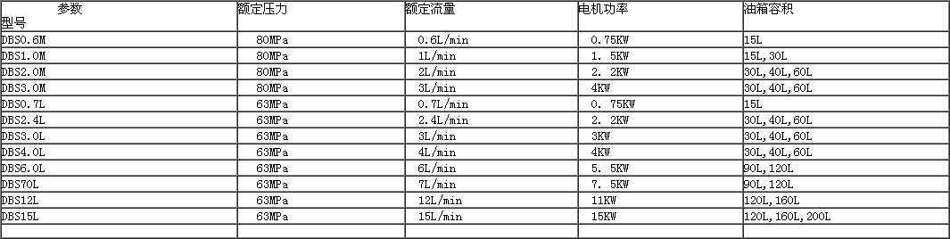 DBS系列電動油泵 詳細(xì)參數(shù)