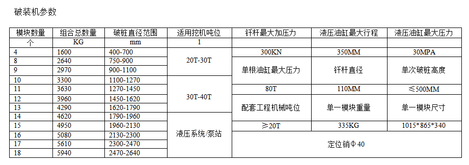多功能:圓樁機和方樁機實現(xiàn)模塊通用,變換模塊組合實現(xiàn)圓樁、方樁皆能破除,一機雙用